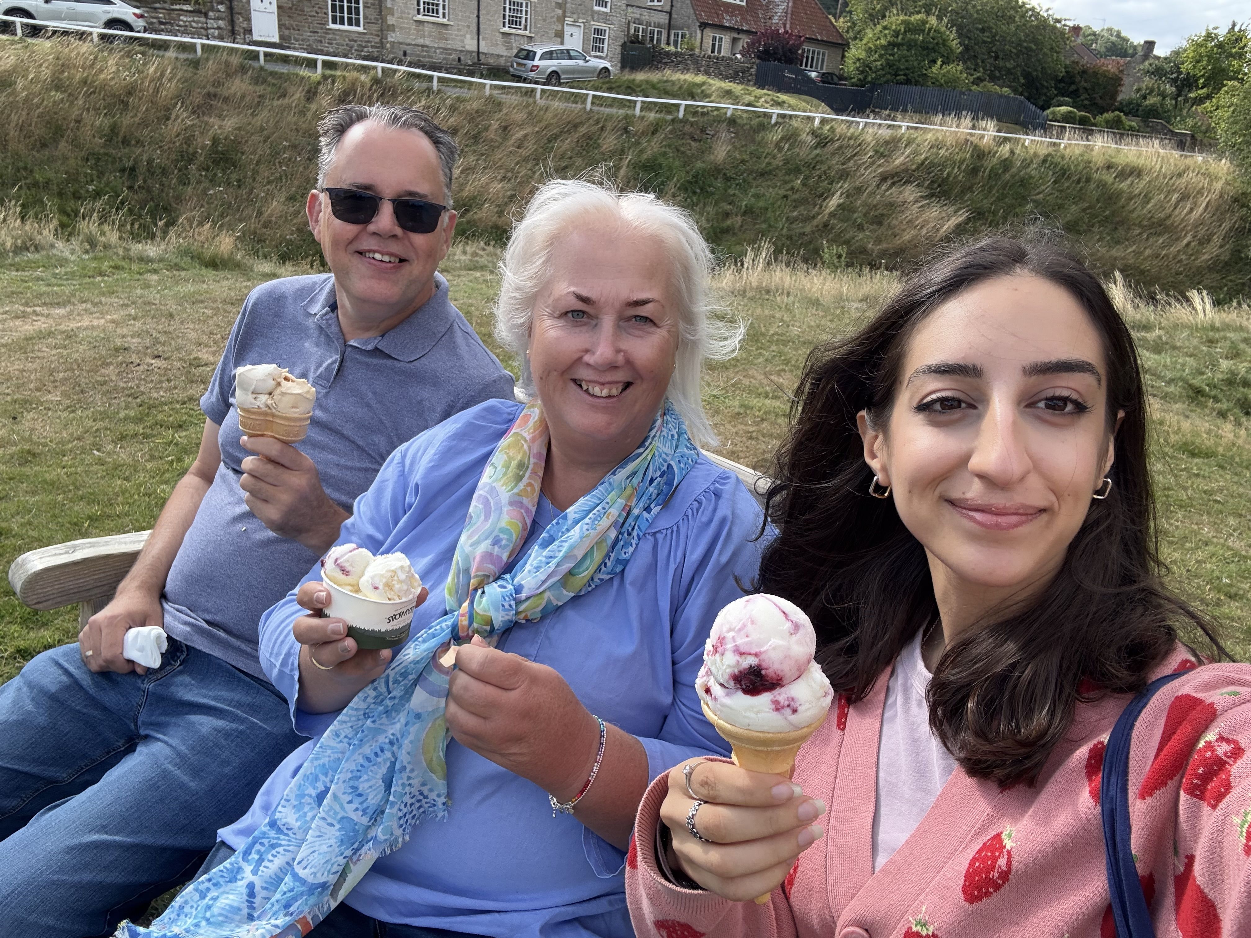 Mark, Debbie and Malak enjoying an ice cream.
