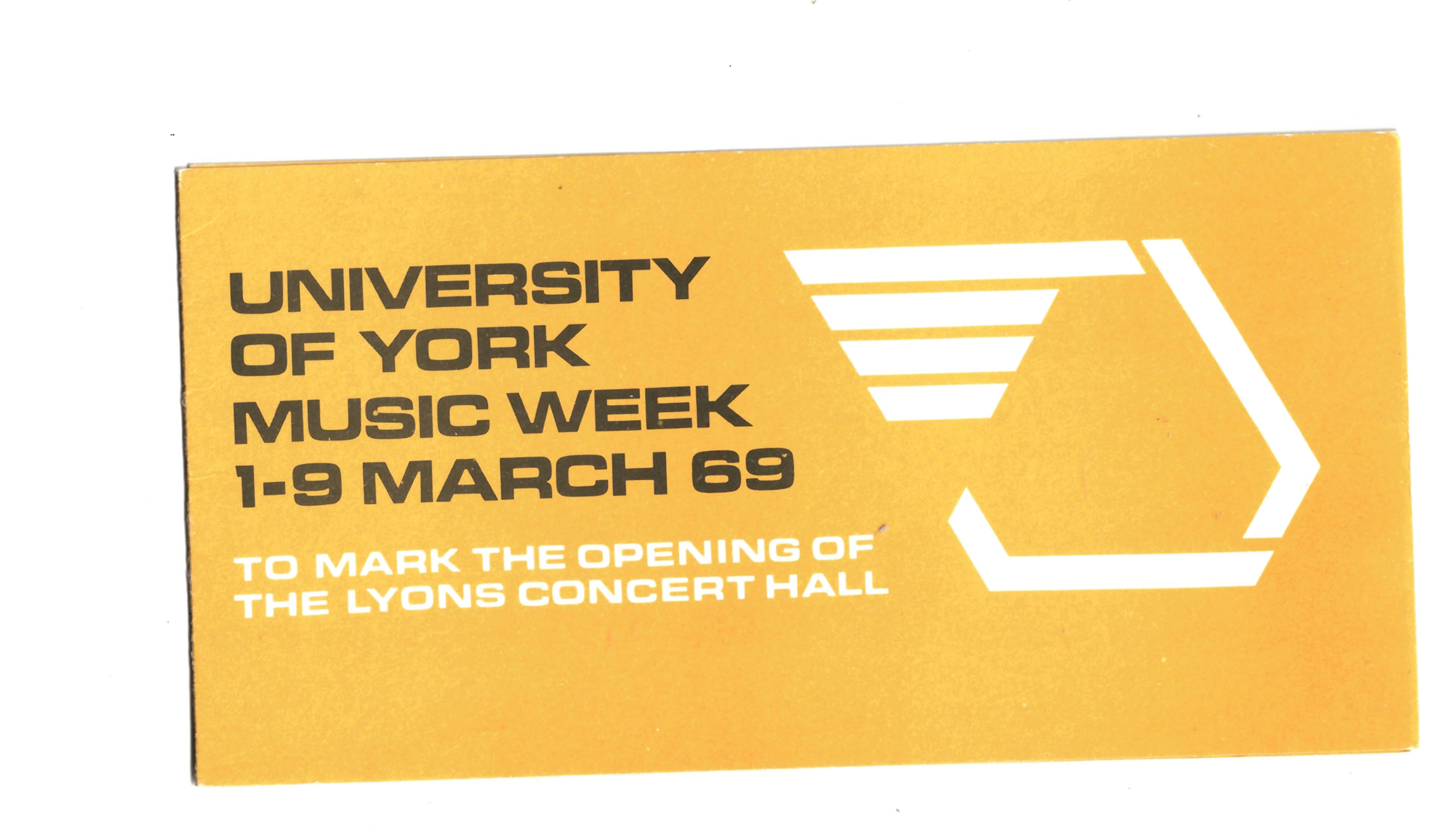 Ticket for University of York Music Week, 1 to 9 March 1969, 'To mark the opening of the Lyons Concert Hall'