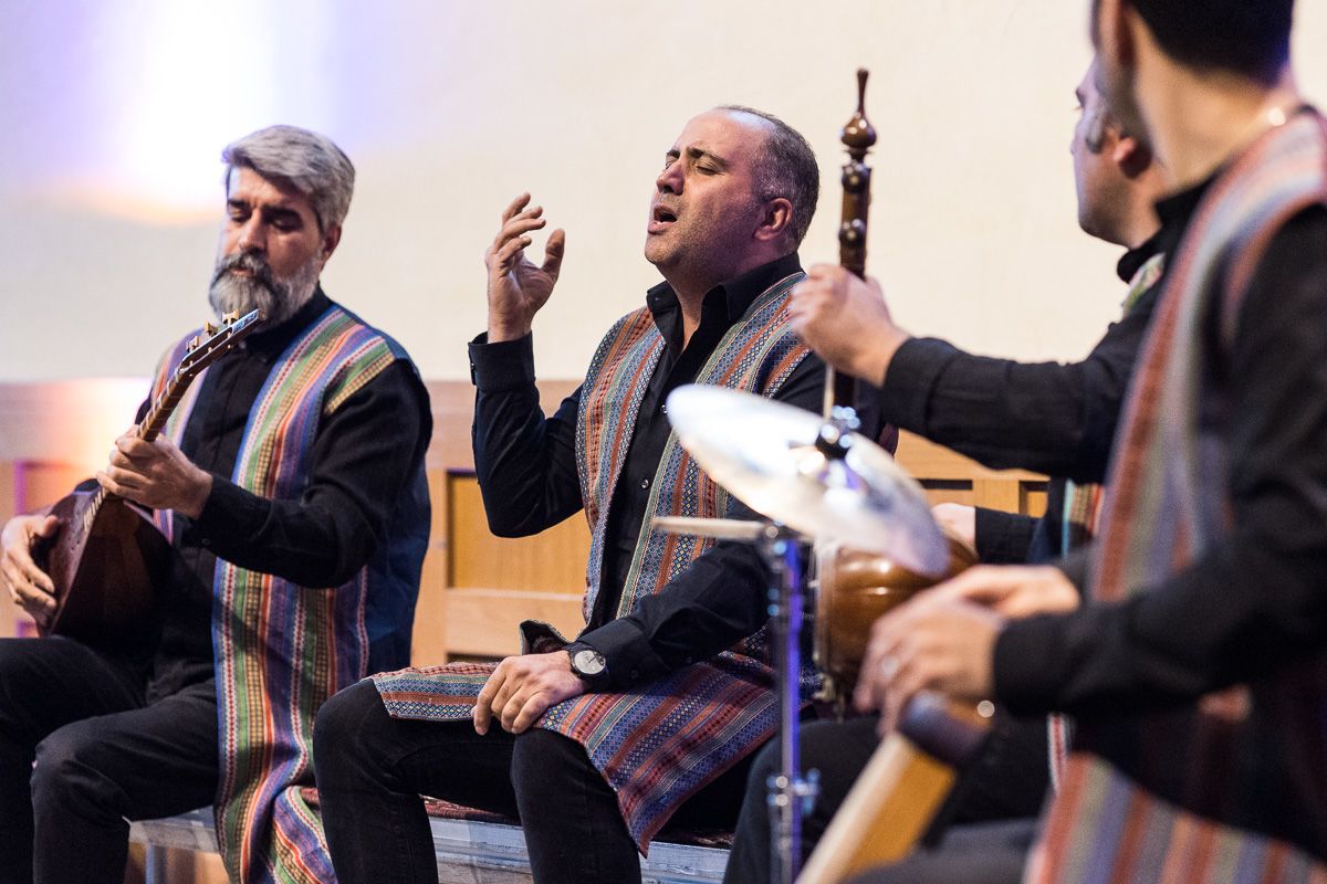 Seyed Ali Jaberi and the Hamdel Ensemble putting on an emotional performance at a talk by Alan Williams, Emeritus Professor of Iranian Studies © Ian Martindale